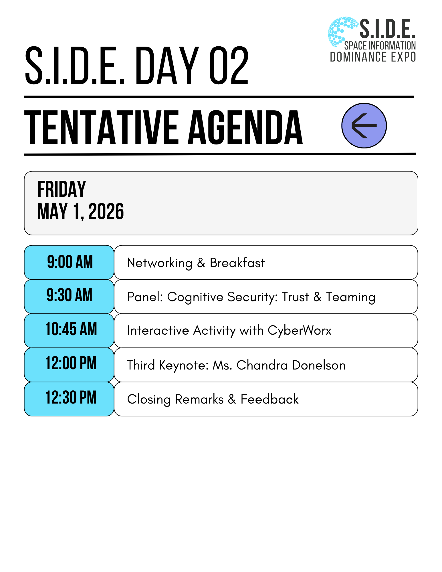 The Space Information Dominance Expo (S.I.D.E.) is a premier event exploring the evolving human relationship with knowledge in an era defined by rapid technological advancements, data-driven decision-making, and national security imperatives.